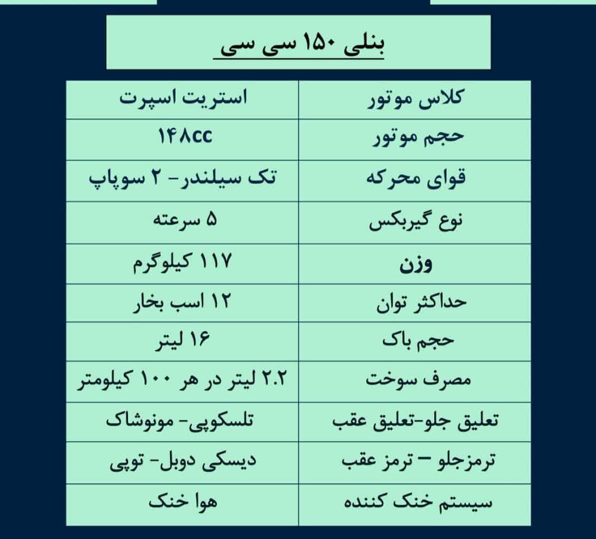 موتور سیکلت بنلی 150 سی سی نیکران مدل 1404