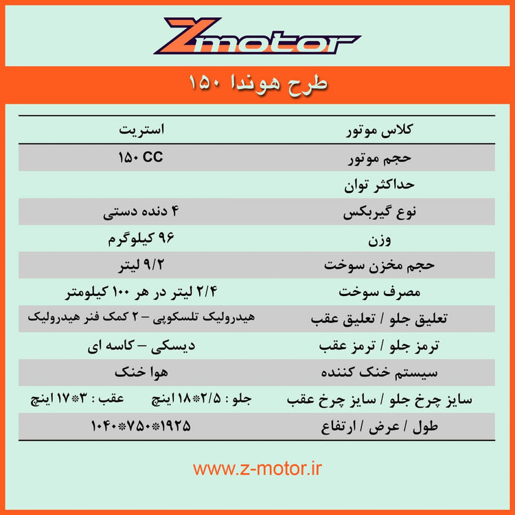 موتور سیکلت طرح هوندا 150 سی سی دینو مدل 1403